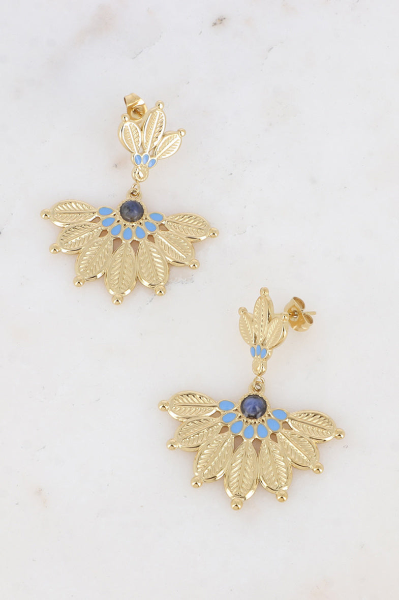 Les boucles d’oreilles pendantes Hana apportent une touche bohème chic :