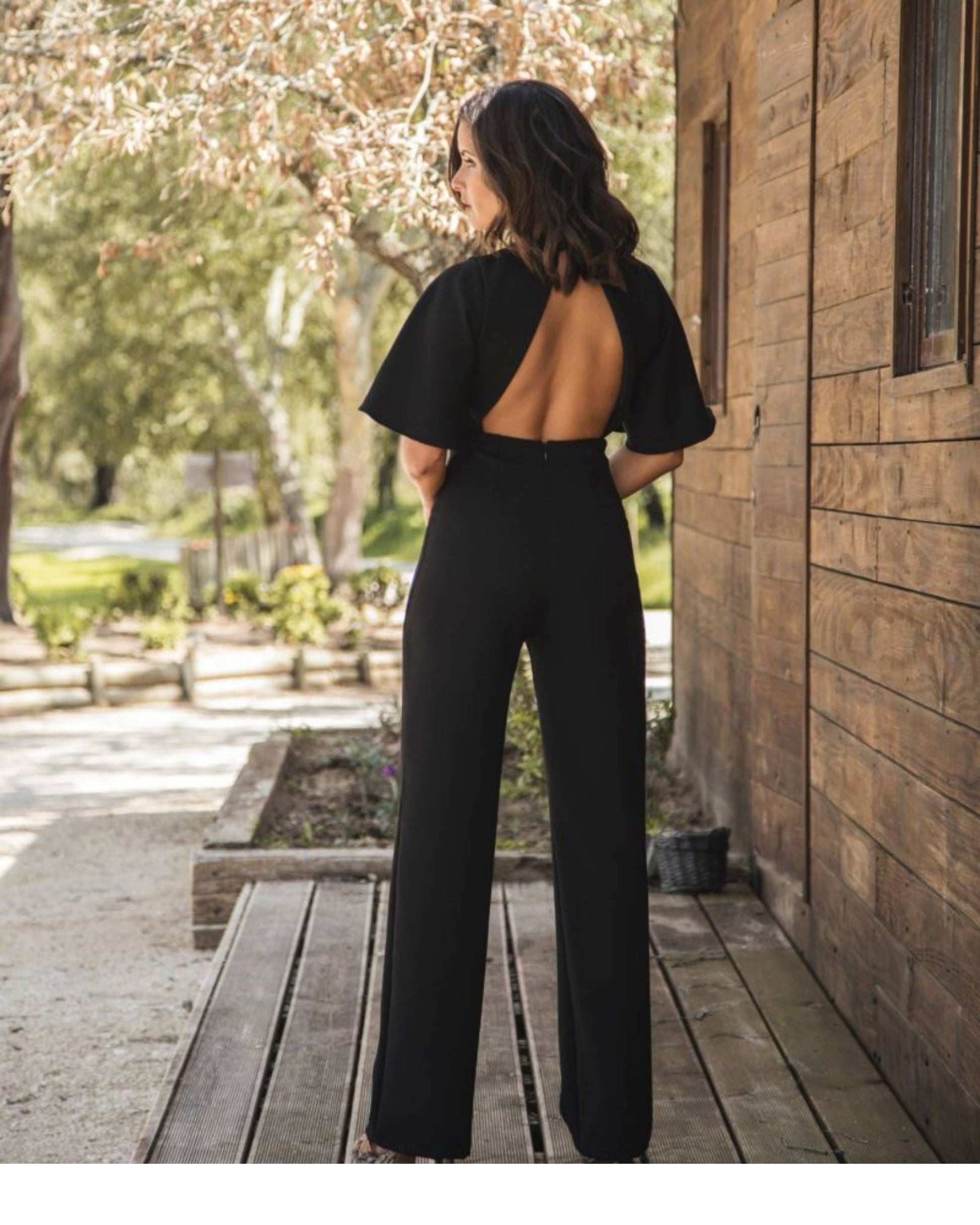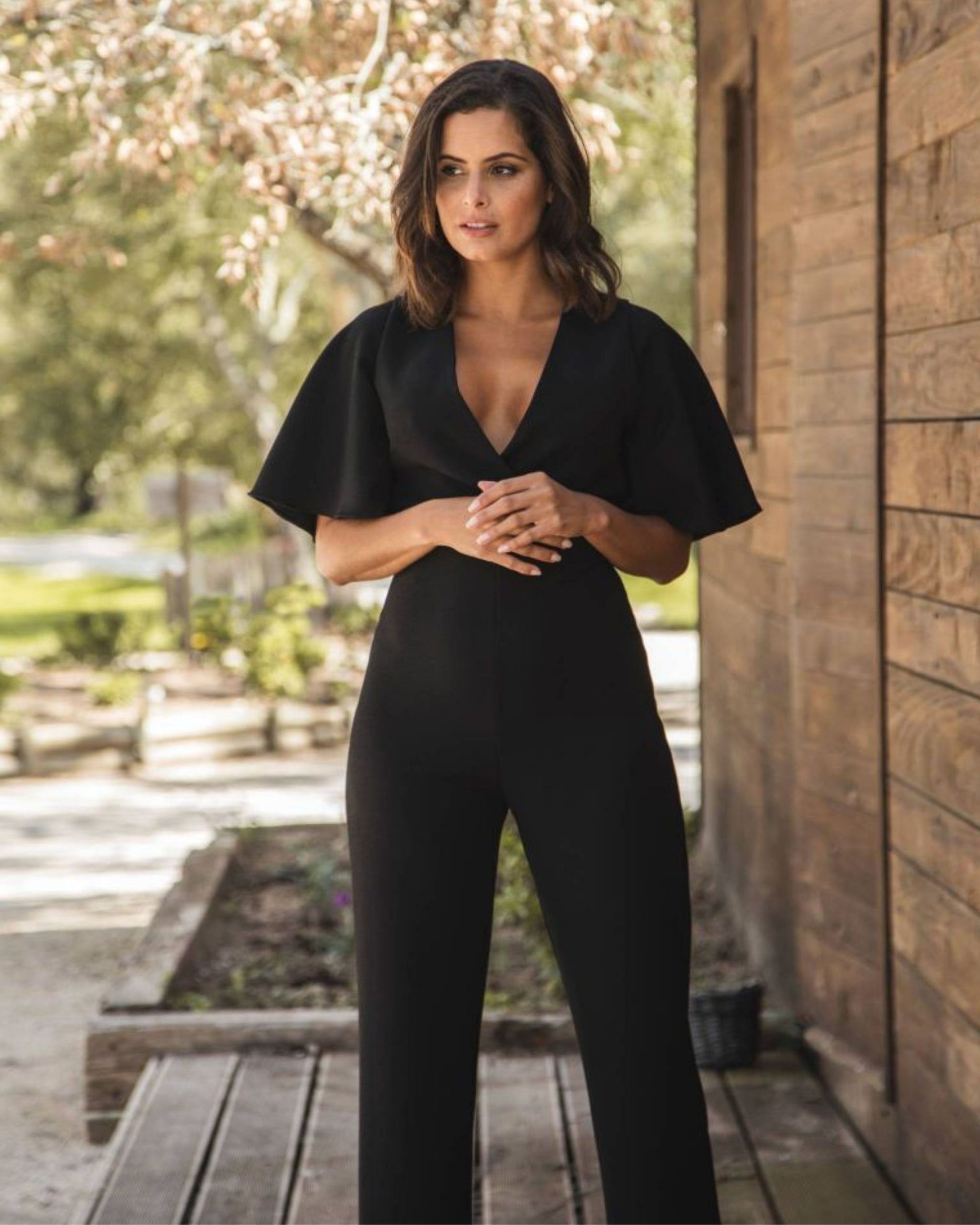 Sophistiquée et facile à porter, la combinaison « Ariane » met en valeur la silhouette grâce à son décolleté en V et sa taille marquée.