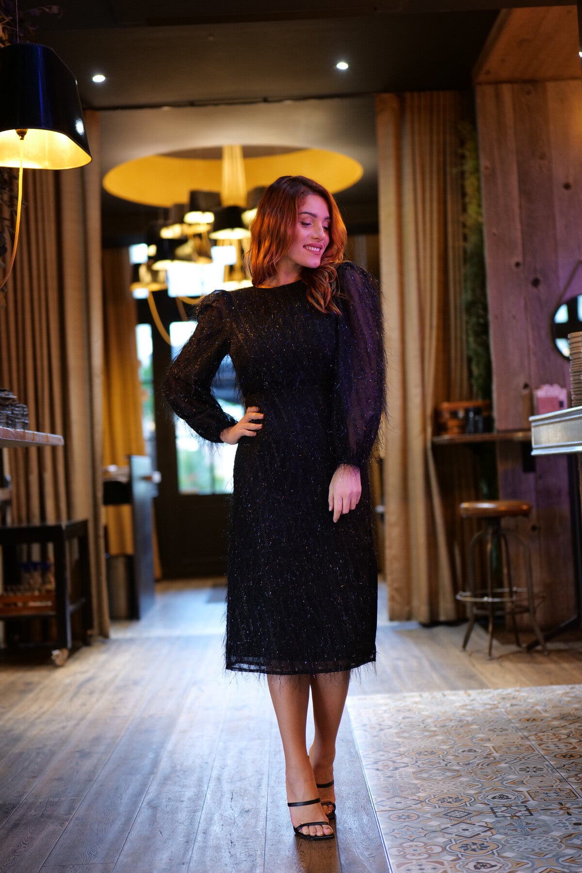 A porter avec des sandales à talons et une pochette métallique pour un look de soirée spectaculaire. Pour un style encore plus affirmé, à ajouter au look une paire de boucles d’oreilles pendantes dorées.